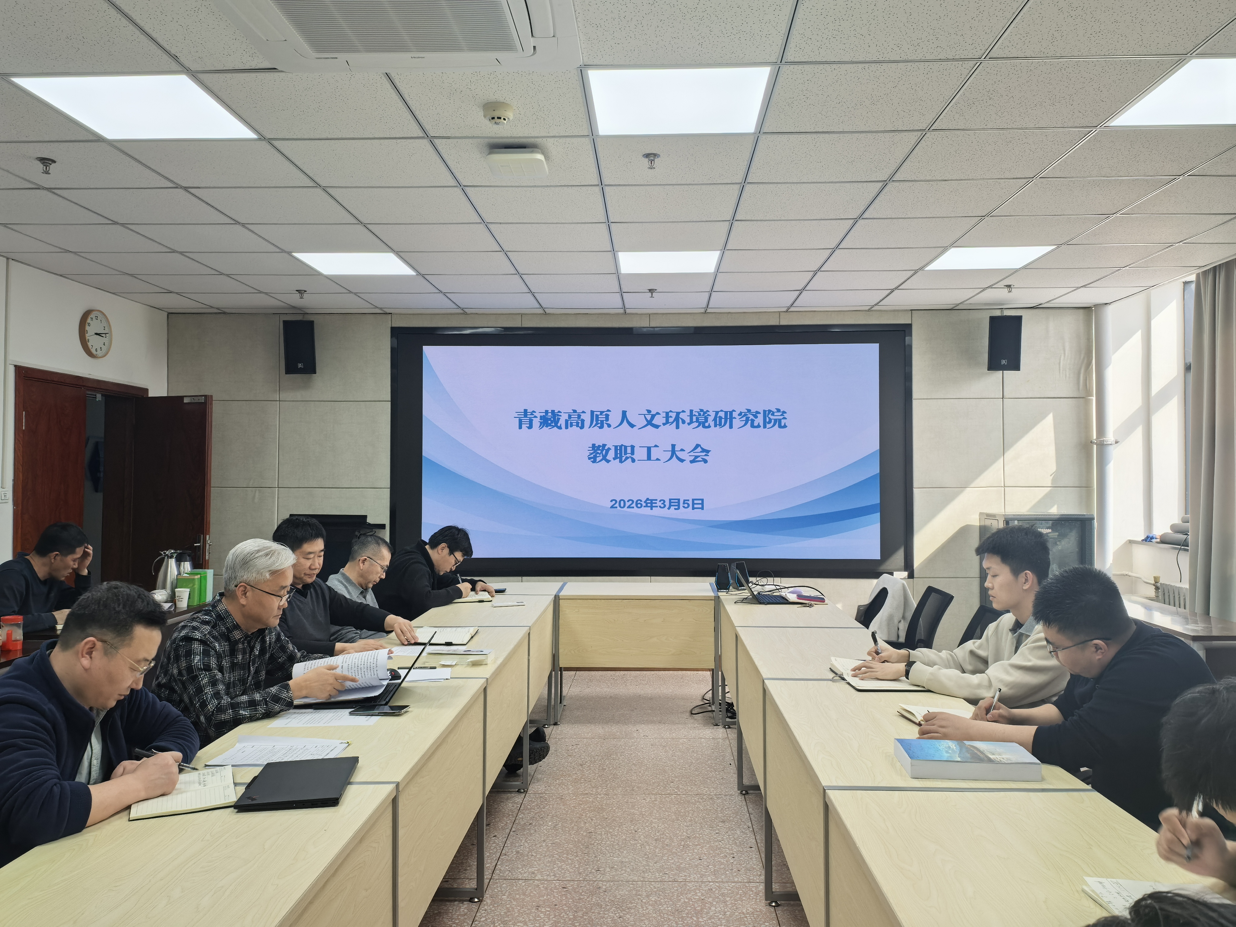3月5日,青藏高原人文环境研究院召开新学期全体教职工大会。集中观看全国两会盛况,传达学校会议精神,部署重点工作,进行保密教育,为新学期各项工作开好局、起好步奠定基础。